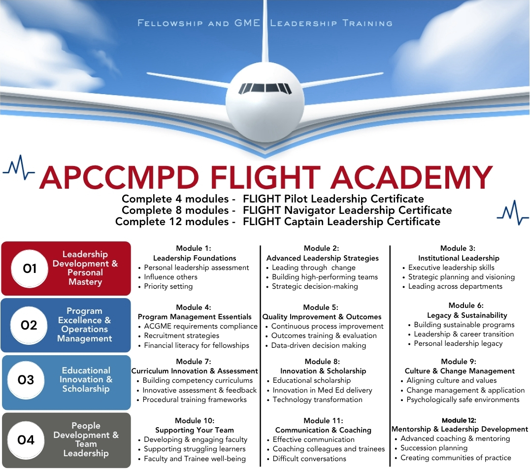 The FLIGHT Academy's modular design ensures that whether participants complete one year for immediate skill development or pursue the full three-year journey for comprehensive leadership mastery, they receive meaningful, applicable learning experiences that directly enhance their effectiveness as GME leaders.